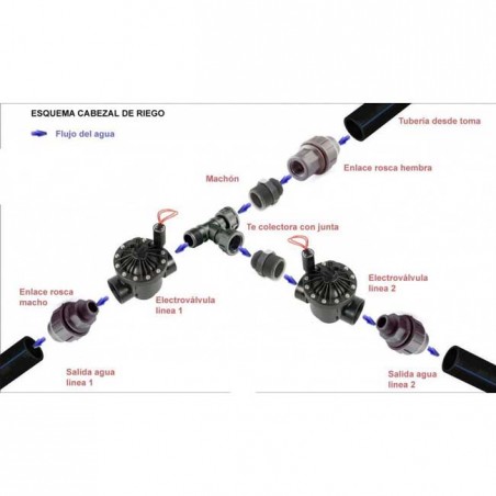 Saídas laterais e finais com giro livre que facilitam a instalação de válvulas solenoides de irrigação.