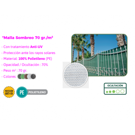 Entwickelt, um die Auswirkungen von Sonnenstrahlen zu reduzieren und Außenbereiche wie Feldfrüchte, Gärten, Terrassen usw. zu beschatten. Ideal zur Platzierung an Zäunen oder Drahtzäunen. Hochwertiges Produkt, hergestellt in Spanien, 70 g/m2. Einfache Installation und Reinigung. Weiße Farbe. Messung 2 x 100 Meter.