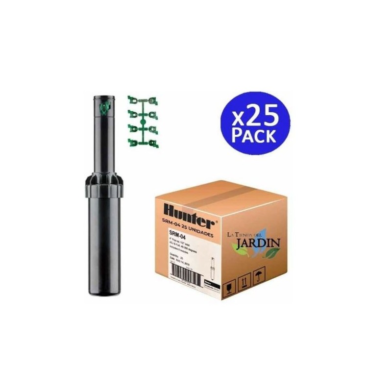 El aspersor Hunter SRM-04 cuenta con una rosca hembra de 1/2'', lo que lo hace compatible con muchos sistemas de riego estándar.