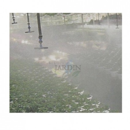 Professionelles Sprühkühlsystem für die Landwirtschaft. Packung mit 50 kompletten Nebelgeräten mit zwei Ausgängen. Dadurch kann die Temperatur gesenkt und die Luftfeuchtigkeit im Bewässerungssystem erhöht werden. Inklusive Vernebler mit 4 Auslässen, 30 cm Stabilisator-Anti-Ablassventil. Empfohlener Arbeitsdruck: 2,0-3,5 bar. Bewässerungsradius: 1,5 bis 2,0 Meter. Klimatisierungssystem in Gewächshäusern, Hühnerställen, Ställen und Schneckenfarmen. Begasungssystem für Gewächshäuser. Sehr kleine Tröpfchen erleichtern die Verdunstung in die Luft und ermöglichen eine minimale Benetzung des Bodens. Durch die Wirbelkonstruktion wird der Wassertropfen zerstäubt, bis er sich in einen feinen Nebel verwandelt. Das Design ist modular, leicht und einfach zu installieren, zu warten und zu konfigurieren. Seine dreiteilige Konstruktion mit einer Dichtung sorgt für eine luftdichte, leckagefreie Abdichtung. Von der Marke Suinga empfohlener Filter: 120-Mesh-Masche oder Ringe. Öffnung ab 2 bar Druck.