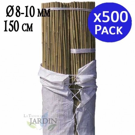 Packung mit 500 Bambus-Tutoren. Es ist ein Hilfsmittel, das in der Landwirtschaft, auf Plantagen und in der Gartenblumenzucht eingesetzt wird. Es dient als Leitfaden und Wächter für das Wachstum unserer Pflanzen oder Bäume und bietet mit seiner Ästhetik ein natürliches Erscheinungsbild. Da Bambus ein Naturprodukt ist, ist das Pfählen einfach und umweltfreundlich. Landwirtschaftliches Produkt mit einfacher Installation. Durchmesser 8-10 mm, Höhe 150 cm.