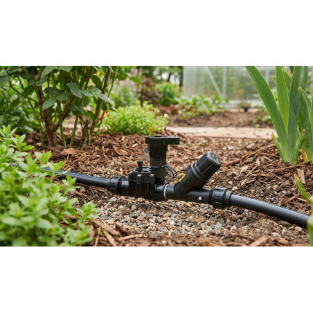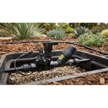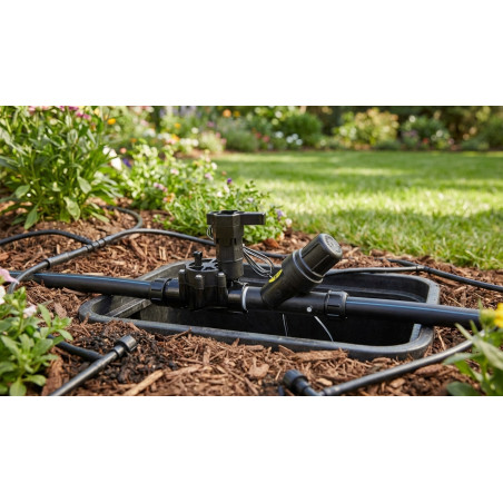 Das Kit wird mit allen notwendigen Elementen geliefert, um den Durchfluss zu steuern, zu filtern und den Druck der lokalen Bewässerungsstationen zu regulieren.
