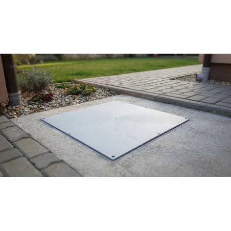 Abmessungen von 28x28 cm , Standardformat, kompatibel mit Monobloc-Entleerungskammern, ideal für Entwässerungs- und Abwassersysteme.