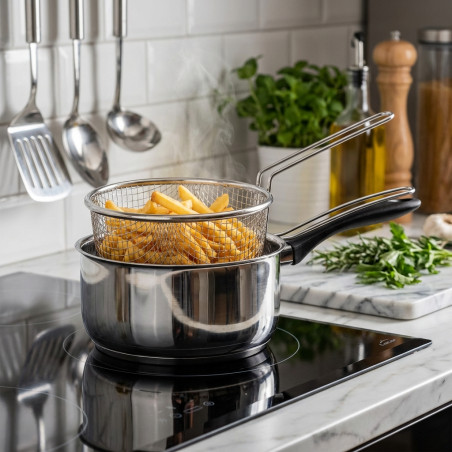 Der Korb eignet sich ideal zum Braten kleiner Lebensmittelportionen, zum Abtropfen von Nudeln oder Gemüse oder für jede Zubereitung, bei der die Kochflüssigkeit leicht entfernt werden muss.
