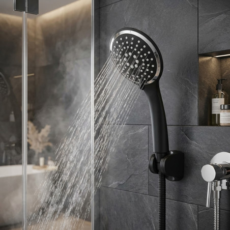 Duschkopf mit 3 Strahlarten , die es Ihnen ermöglichen, zwischen konzentrierten Wasserstrahlen, sanftem Regen oder Massage zu wechseln und so ein individuelles und komfortables Duscherlebnis zu bieten.