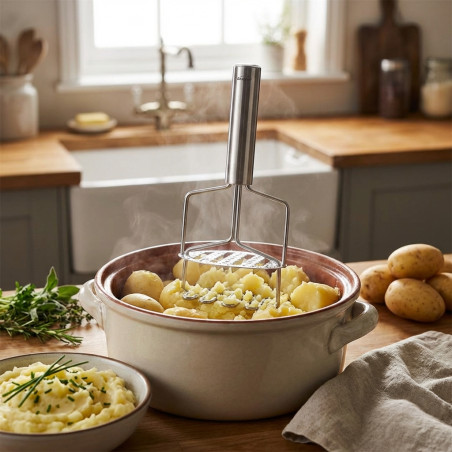 Dieser Kartoffelstampfer ist aus hochwertigem Edelstahl gefertigt.