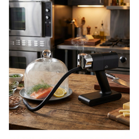 Dieser Instant-Lebensmittelräucherofen eignet sich ideal zum Räuchern von Fleisch, Fisch, Käse und vielem mehr. Er ist auch perfekt für Cocktails und verleiht Gerichten besondere, individuelle Aromen. Mit seinen kompakten Maßen von 26 x 8 x 20 cm ist der Räucherofen leicht zu transportieren und eignet sich perfekt, um Speisen vor Ihren Gästen zu präsentieren und zu verfeinern und sie zu beeindrucken. Im Lieferumfang enthalten sind ein Set Ersatzfilter und ein Beutel Olivenholzspäne (100 g). Der Ofen ist mit Räucherkuppeln kompatibel.