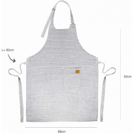 Schlichte, elegante und originelle Ästhetik. Entworfen mit einer unteren Tasche, die in zwei Teile geteilt ist. Lederetikett an der oberen Tasche mit eingraviertem Logo. Für die Waschmaschine (30°) und den Trockner geeignet. Es wird empfohlen, bei niedriger Temperatur zu bügeln. Unisex. Einheitsgröße verstellbar. Maße: 68 x 83 cm.