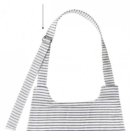 Die Schürze hat ein schlichtes, elegantes und originelles Design mit weißen und blauen Streifen.