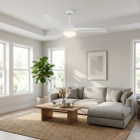 Dieser moderne Deckenventilator sorgt nicht nur für eine erfrischende und gleichmäßige Brise, sondern verfügt auch über eine hochwertige, dimmbare LED-Leuchte , mit der Sie für jede Gelegenheit das perfekte Ambiente schaffen können. Dank der mitgelieferten Fernbedienung lassen sich Geschwindigkeit, Lichtintensität und sogar der Winter-/Sommermodus so einfach wie nie zuvor einstellen. Genießen Sie maximalen Komfort, ohne Ihren Platz verlassen zu müssen.
