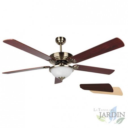 Dieser ferngesteuerte Deckenventilator von Orbegozo ist die perfekte Lösung, um Ihr Zuhause kühl und gut beleuchtet zu halten. Mit einer Leistung von 70 W und einem Durchmesser von 142 cm verfügt dieser Ventilator über 5 umkehrbare Flügel, die ihn leise und effizient machen. Darüber hinaus ermöglicht die Fernbedienung die Steuerung der 3 Lüftungsgeschwindigkeiten und das reversible System bietet Ihnen die Möglichkeit, ihn sowohl im Winter als auch im Sommer zu verwenden. Sie umfasst eine Deckenleuchte mit E27-Leuchtmittel, kompatibel mit 2 60-W-Glühbirnen (nicht im Lieferumfang enthalten) und hat eine Höhe von 53 cm.
