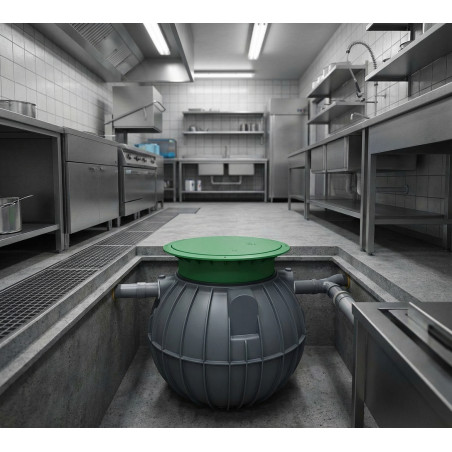 Es wurde entwickelt, um Fette und Öle aus dem Abwasser in Küchen, Bars und Restaurants zurückzuhalten und so Verstopfungen und Verschmutzungen zu verhindern.