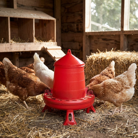Kunststofftrichter für Hühner und andere Vögel können entweder hängend oder mit Beinen direkt auf den Boden gestellt werden.