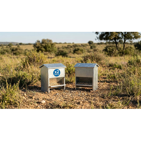 Kleiner Futterspender für Rebhühner und andere Vögel aus verzinktem Blech. Ideal zum Füttern Ihrer gefiederten Freunde im Garten.