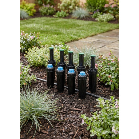Ein Versenkregner ist ein Gerät, das in automatischen Bewässerungssystemen zum Bewässern kleiner Flächen wie Gärten, Sträuchern und Rasenflächen verwendet wird. Es hebt sich, wenn die Bewässerung aktiviert wird, und zieht sich zurück, wenn diese beendet ist. Dies ermöglicht eine effiziente und diskrete Bewässerung.