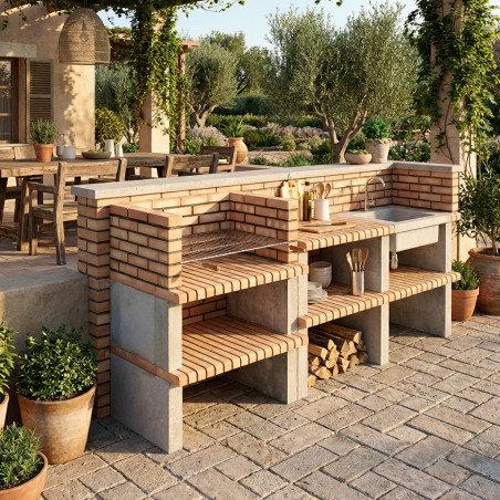 Verwandeln Sie Ihren Außenbereich mit dem Grao Einbaugrillmodul in den perfekten Ort für unvergessliche Zusammenkünfte. Diese langlebige und bereichernde Konstruktion vereint die Robustheit traditioneller Bauweise mit einer modernen und eleganten Ziegelsteinoptik. Mit ihren optimierten Maßen von 100 x 70 x 120 cm ist dieses Basismodul nicht nur ein Grillplatz, sondern auch ein architektonischer Blickfang für Ihren Garten oder Ihre Terrasse.
