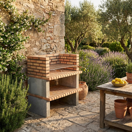 Die Wahl von getönten Ziegeln verleiht dem Garten eine elegante Optik, die sich harmonisch in jede natürliche Umgebung und Landschaftsgestaltung einfügt. Die solide Konstruktion garantiert außergewöhnliche Witterungsbeständigkeit, sodass Sie jahrelang unzählige Grillabende genießen können, ohne sich Gedanken über aufwendige Pflege machen zu müssen.