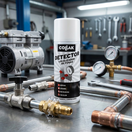 Gasleckdetektor auf Wasserbasis, der Tenside, Korrosionsschutzmittel und Stabilisierungsmittel enthält. Formulierung zur Erkennung von Lecks in Ventilen, Gewindeverbindungen, Rohren, Lötverbindungen, Kompressoren... Stabiles, sicheres Produkt, hinterlässt keine Flecken und erzeugt keine Korrosion. Schädigt Kunststoffe, Stahl, Aluminium und Kupfer nicht. Das Spray leicht schütteln und gleichmäßig auf die zu behandelnde Stelle auftragen. Bei Undichtigkeiten entstehen genau an der Stelle Blasen. Tragen Sie das Produkt nicht auf elektrische Geräte auf. An einem trockenen Ort bei einer Temperatur zwischen 10 und 25 °C lagern. Haltbarkeit: Mindestens 3 Jahre im verschlossenen Originalbehälter bei normaler Temperatur und Luftfeuchtigkeit. An gut belüfteten Orten auftragen. Niemals auf angeschlossene Geräte anwenden.