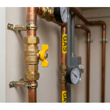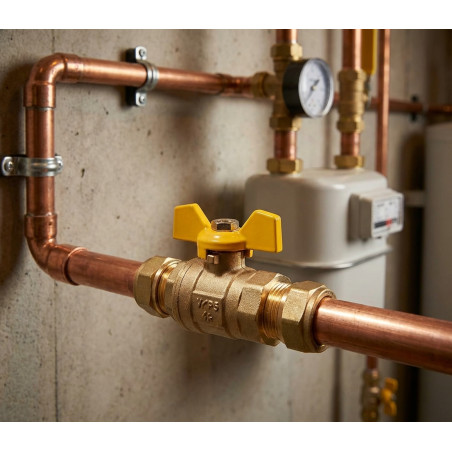 *Der Absperrhahn besteht aus hochwertigem Messing gemäß den Normen UNEEN 12165, UNE-EN 12164 und UNE-EN 1982 und verfügt über Gummidichtungen und zugelassene Schmiermittel für den Einsatz in Gasinstallationen.*
