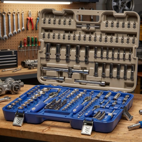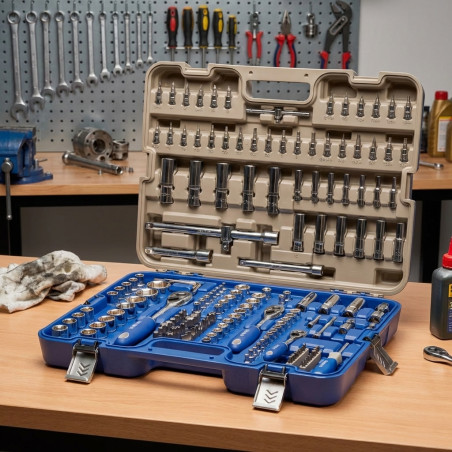 Dank seiner umfangreichen Zusammenstellung und der Qualität seiner Ratschen und Steckschlüssel eignet sich dieser Werkzeugsatz perfekt sowohl für professionelle Kfz-Werkstätten als auch für Heimwerker, die langlebige und leistungsstarke Werkzeuge suchen.