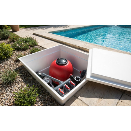 Die Version mit dem STAR PLUS - 500 Filter, Seitenventil und IRI 1000 M Pumpe für den Einbau im Boden ist eine hochwertige Option für Ihren Pool. Sie umfasst einen Filter mit 6-Wege-Umschaltventil, eine Einphasenpumpe mit Vorfilter, einen Verteiler, Zubehör und Ø 50 PVC-Ventile – alles, was für ein effizientes Filtersystem benötigt wird. Das Gehäuse aus Polyester und Fiberglas gewährleistet Stabilität und Langlebigkeit, während die 1-PS-Pumpe 11 m³/ha bei einem Druck von 10 ma