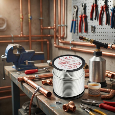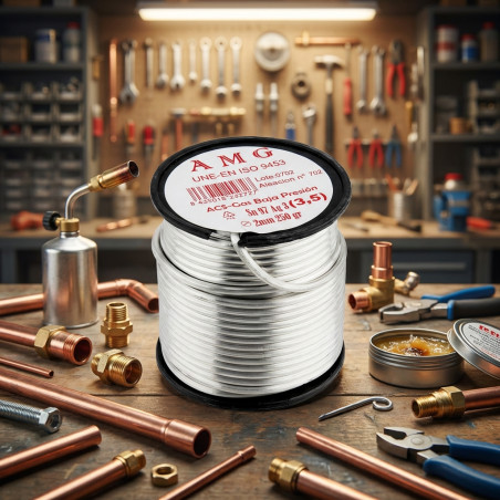 Bleifreie Legierung, ideal zum Weichlöten von Kupferrohren für Trinkwasser, Heizung und Niederdruckgas, für allgemeine Sanitärarbeiten; Zertifiziert und genehmigt von Aenor. Hohe Fließfähigkeit und hervorragende Benetzung ermöglichen ein schnelleres Schweißen und zeichnen sich durch eine hohe mechanische Beständigkeit aus.