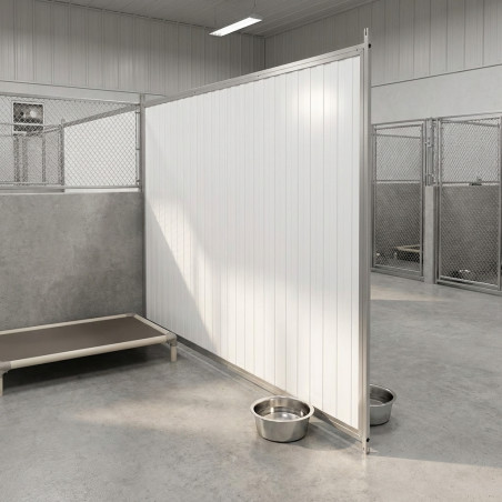 Robuste Trennwand in Sandwichbauweise (200 x 185 cm) zur optimalen Unterteilung und Sicherheit von Hundezwingern. Strapazierfähiges, hygienisches und leicht zu reinigendes Material, ideal für den professionellen Einsatz.