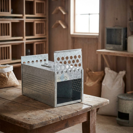 Der Käfig besteht aus verzinktem Blech, um Haltbarkeit und Widerstandsfähigkeit zu gewährleisten.