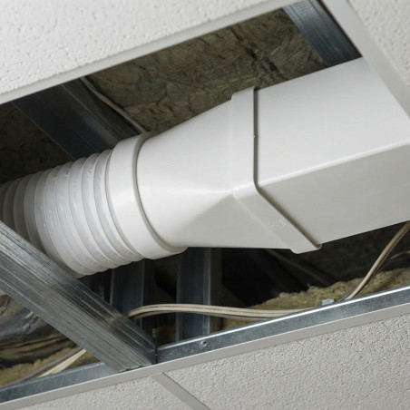 Mischfitting Ø 100 55x110mm für Lüfter-Extractor | Feuerfeste Verbindung | Widerstandsfähig gegen Feuchtigkeit und Hohe Temperaturen Produktmerkmale: Einfache und Schnelle Montage : Fitting mit Männlich-Weiblich-Design, ideal für eine unkomplizierte Installation. Feuerfestes und Selbstverlöschendes Material : Widerstandsfähig bis zu 80ºC, bietet Sicherheit und Zuverlässigkeit in anspruchsvollen Umgebungen. Bessere Leistung als Traditionelle Rohre : Die glatte Innenwand reduziert den Druckverlust und optimiert den Luftstrom. Feuchtigkeitsbeständig : Es wird nicht durch Feuchtigkeit beschädigt, was eine langanhaltende Leistung in feuchten Bedingungen garantiert. Kompaktes und Vielseitiges Design : Mit nur 55 mm Höhe passt es in jeden Raum und ist ideal für den Einsatz in abgehängten Decken. Abmessungen – Breite: 11 cm, Tiefe: 14 cm, Höhe: 10 cm