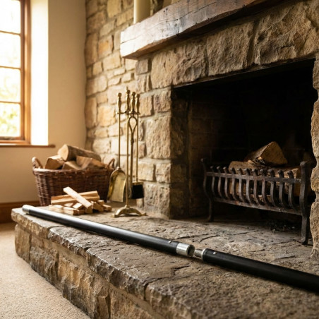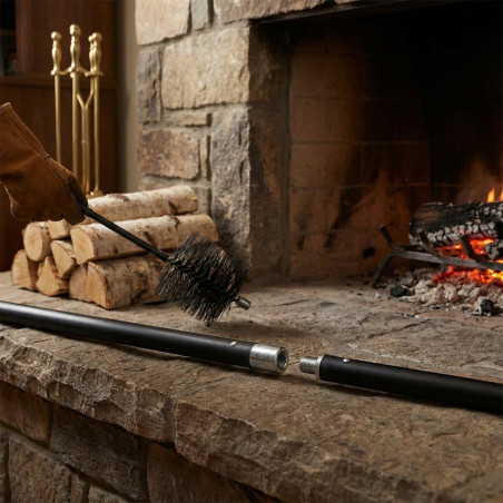 Die Stange ist so konstruiert, dass sie Ruß, Kreosot und andere eingetrocknete Ablagerungen, die sich in Schornsteinen und Ofenrohren ansammeln, effizient entfernt.