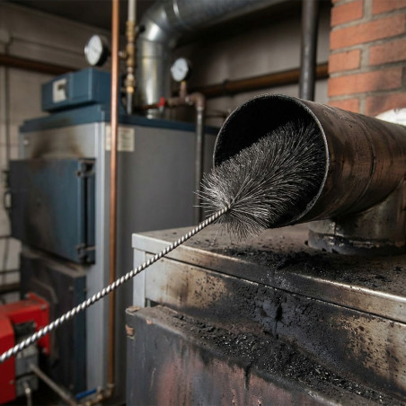 Halten Sie Ihre Heizungsanlage in Top-Zustand mit unserer robusten Bürste, die speziell für die gründliche Reinigung von Heizkesseln und Schornsteinen entwickelt wurde. Hergestellt aus hochwertigem Stahl, garantiert diese Bürste außergewöhnliche Langlebigkeit und professionelle Leistung, selbst bei anspruchsvollsten Reinigungsaufgaben. Dank ihres ergonomischen Designs und der Länge von 1 Meter erreichen Sie mühelos auch die schwer zugänglichsten Stellen und entfernen Ruß, Kreosot und andere Ablagerungen restlos.