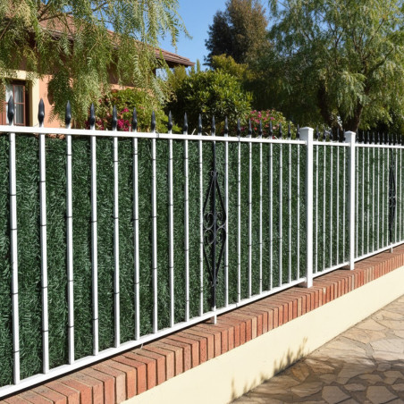 Standard-Kunsthecke mit dünnen Blättern, 90 Stäbe. 1 x 3 Meter. Verborgenheit 85 %. Es ist eine Alternative zu klassischen Naturgehegen und sorgt für ein natürliches Erscheinungsbild in Ihrem Garten oder Ihrer Terrasse. Es handelt sich um ein äußerst dekoratives und einfach zu installierendes Produkt mit UV-Schutz.