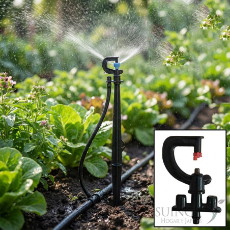 Fester Bewässerungs-Mikrosprinkler mit 180°-Winkel. Durchflussmenge 73 bis 125 l/h. Reichweitenradius 1,7 Meter. Hergestellt in Spanien aus hochwertigen Kunststoffmaterialien. Inklusive 40 cm Pfahlverbinder zum Rohr. Beutel mit 10 Einheiten. Bei größeren Mengen Preis erfragen.