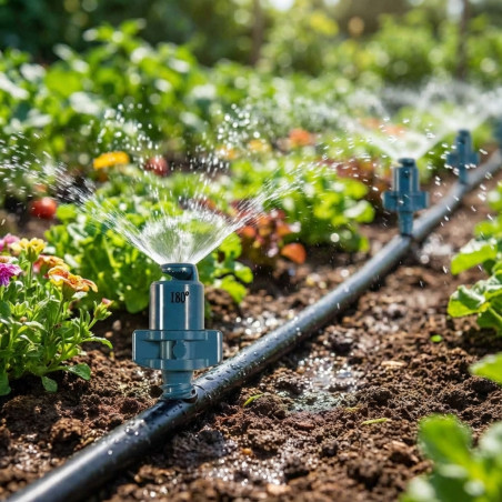 Der Mikrobewässerungssprinkler 180º 1,8–2,2 Meter (Packung mit 100 Stück) ist die perfekte Lösung, um Ihre Pflanzen effizient und präzise mit Feuchtigkeit zu versorgen. Mit einer Reichweite von 1,8 bis 2,2 Metern und einer Durchflussmenge von 36 bis 54 l/h garantiert dieser Mikrosprinkler eine gleichmäßige Wasserverteilung. Darüber hinaus ermöglicht das 90°-Bewässerungs-Mikrodiffusor-Design die Abdeckung eines großen Bewässerungsbereichs. Ein Wasserdruck von 1 bis 2 bar wird empfohlen und kann einfach durch Einrasten direkt in das Tropfrohr installiert werden. Dieses Paket enthält 100 Mikrosprinkler, um Ihren gesamten Bewässerungsbedarf zu decken.