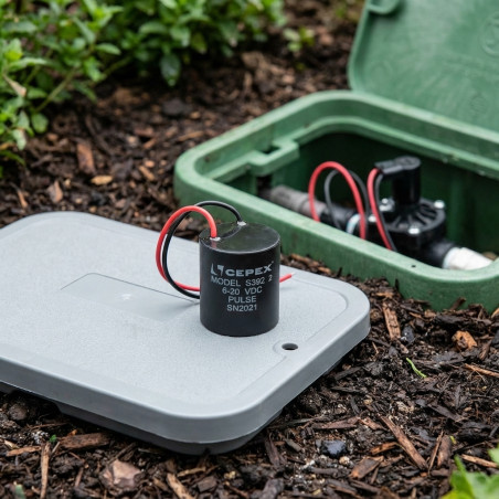 Ersatzmagnet für Bewässerungsmagnetventile der Marke Cepex. Verfügbare Modelle: 24 VAC und 9 V LATCH. Gerät, dessen Funktion darin besteht, das Bewässerungsmagnetventil durch die Bewegung eines Kolbens zu öffnen und zu schließen, der durch das elektrische Signal aktiviert wird. 2-Wege-NC-Magnetventil (normalerweise geschlossen). Erhältlich mit 24 VAC und 9 V LATCH, für Cepex-Magnetventile der Serien CPV (altes Modell) und CPVT (neues Modell mit Positionswahlschalter „geschlossen – automatisch – offen“). Wählen Sie das passende Modell für Ihr Cepex-Magnetventil.