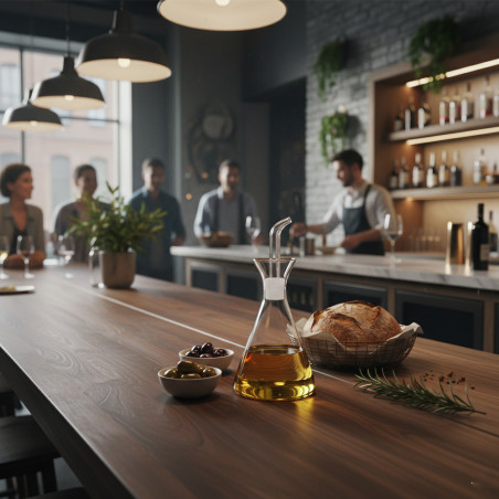 Ölkanne aus hochbeständigem Borosilikatglas. Fassungsvermögen: 1000 ml. Abnehmbares Mundstück. Anti-Tropf-Design.