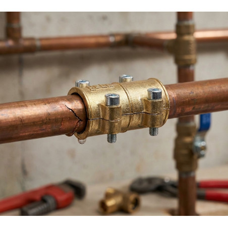Messingklemme zum Verschließen von Löchern in Kupferrohren. Innengummi, der den Durchtritt von Wasser nach außen verhindert. Maße: 22 mm. Empfohlen für 22-mm-Röhren. Empfohlen zum Abdichten von Löchern, Rissen und porösen Stellen.