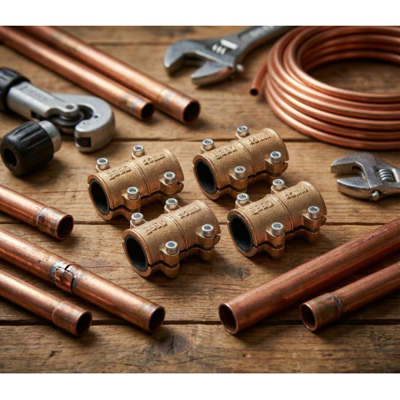 Messingklemme zum Verschließen von Löchern in Kupferrohren. Innengummi, der den Durchtritt von Wasser nach außen verhindert. Maße: 15 mm. Empfohlen für 15-mm-Röhren. Empfohlen zum Abdichten von Löchern, Rissen und porösen Stellen. Packen Sie 4 Einheiten ein.