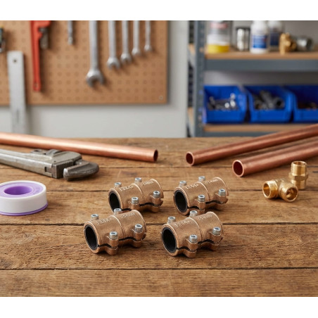 Messingklemme zum Verschließen von Löchern in Kupferrohren. Innengummi, der den Durchtritt von Wasser nach außen verhindert. Maße: 18 mm. Empfohlen für 18-mm-Röhren. Empfohlen zum Abdichten von Löchern, Rissen und porösen Stellen. Packen Sie 4 Einheiten ein.