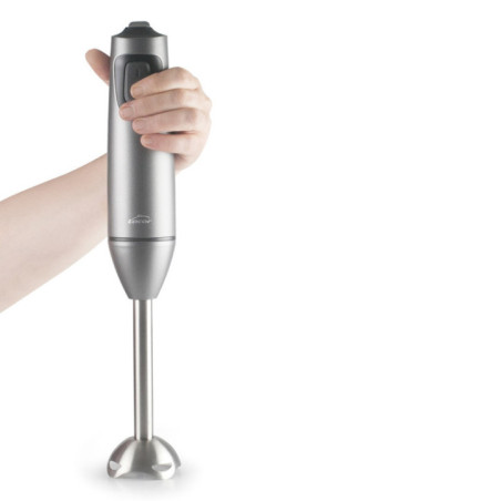 Ausgestattet mit einem leistungsstarken und effizienten Motor garantiert dieser Stabmixer überragende Ergebnisse – egal ob Sie feine Saucen emulgieren, heiße Suppen direkt im Topf pürieren oder im Handumdrehen nahrhafte Smoothies zubereiten möchten. Sein ergonomisches Design sorgt für komfortable und sichere Handhabung, auch bei längerem Gebrauch.