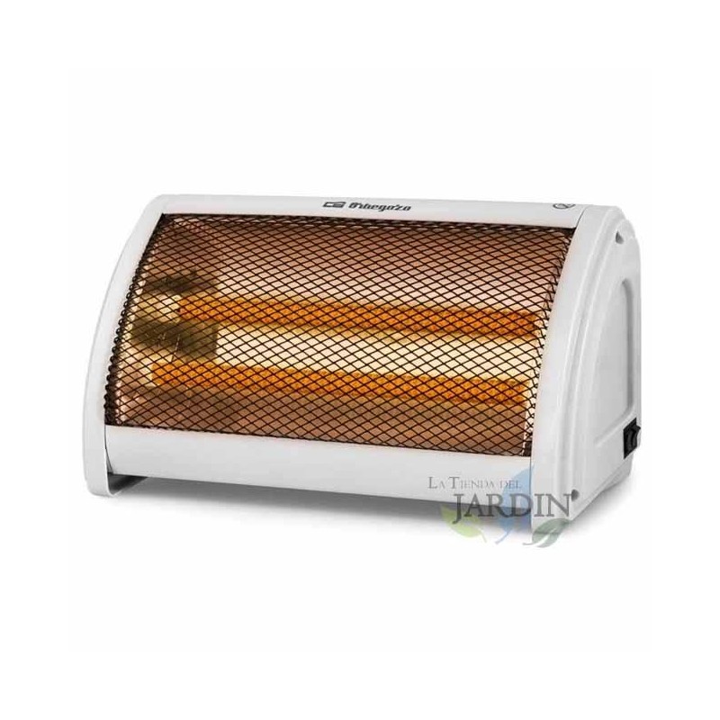 Orbegozo - Keramikofen mit 1000 W Leistung und zwei Heizstufen: 500/1000 W. Er verfügt über einen geschützten Hochleistungsreflektor, zwei Keramikröhren, einen doppelten Bedienknopf, einen Tragegriff, eine Kippsicherung und Abmessungen (Breite x Höhe x Länge). ): 37,5 x 20 x 17,5 cm. Anschluss an 230 V ~ 50 Hz.