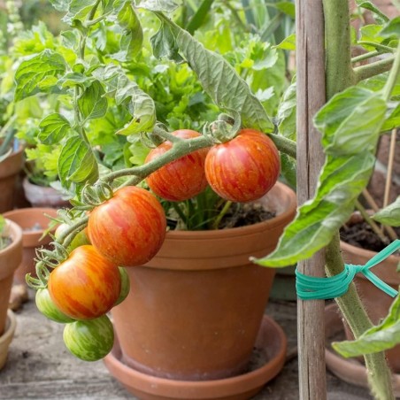 PVC-plastifizierter Draht, um die Pflanze am Tutor zu halten und ihr richtiges Wachstum zu unterstützen. Es enthält einen Fräser, um das Schneiden zu erleichtern.