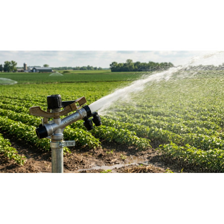 Die Bewässerungskanone Dallas Circular 1 1/4, 16 bis 26 m ist ein landwirtschaftlicher Sprinkler aus Aluminium, Kunststoff und Edelstahl, der sich ideal für die effiziente Bewässerung großer Flächen eignet. Mit einer Reichweite von 16 bis 26 Metern und einer Durchflussrate von 2.250 bis 10.800 Litern/Stunde ist diese Bewässerungskanone perfekt, um Ihre Pflanzen gut mit Feuchtigkeit zu versorgen.