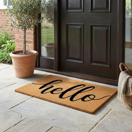 Fußmatte „Hallo“ (75 x 45 cm): Begrüßen Sie Ihre Gäste stilvoll. Strapazierfähig, rutschfest und aus recycelbaren Materialien hergestellt – für ein sauberes und sicheres Zuhause.