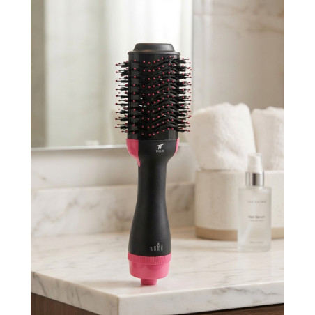 2 in 1: Glättbürste – Haartrockner. Leistung: 1200 W. Turmalin-Technologie. Flexible Borsten. Leichtes Design. 360° drehbares Kabel.