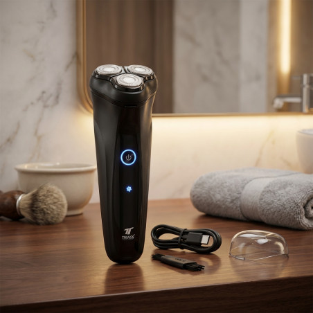 Thulos Wiederaufladbarer Haarrasierer mit 90 Minuten Autonomie . Nennspannung: 5V. Nennleistung: 5W. Ladezeit: Abhängig von der Stromstärke des verwendeten Adapters (max. 2Ah). Betriebszeit: 90 Min. Ladeschnittstelle: Typ-C. Langlebiger Li-Ion-Akku. Ausklappbarer Kotelettenschneider. Unabhängiger schwebender Kopf. Beinhaltet: Reinigungsbürste, Ladekabel (USB auf Typ-C), Schutzkappe.