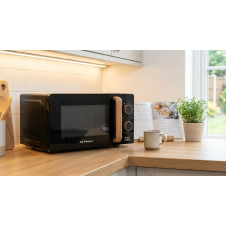 Mikrowelle mit 700 W Leistung, inklusive 900-W-Quarzgrill. Sechs Mikrowellenleistungsstufen mit drei kombinierten Grill-Mikrowellen-Funktionen, inklusive Grillrost. Timer bis zu 30 Minuten mit Auftauprogramm und Signalton bei Garzeitende. Gewicht: 10 kg. Abmessungen: 446 x 243 x 353 mm.