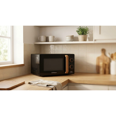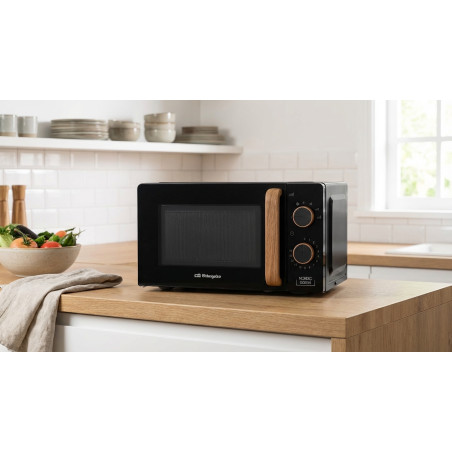 Mikrowelle mit 700 W Leistung, inklusive 900-W-Quarzgrill. Fünf Leistungsstufen und drei kombinierte Grill-Mikrowellen-Funktionen, inklusive Grillrost. Timer bis zu 30 Minuten mit Auftauprogramm und Signalton nach Garzeitende. Gewicht: 11 kg. Abmessungen: 446 x 243 x 361 mm.
