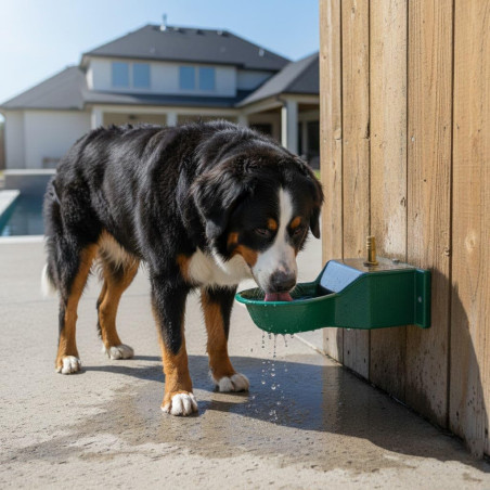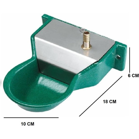 Kleine Hundetränke . Vollautomatisch, da sie beim Arbeiten mit niedrigem Druck einen konstanten Wasserstand aufrechterhalten. Hergestellt aus hochwertigem, gegossenem, lackiertem Aluminium, das Korrosion verhindert. Zur Befestigung an der Wand konzipiert. Maße 10 x 18 x 6 cm.