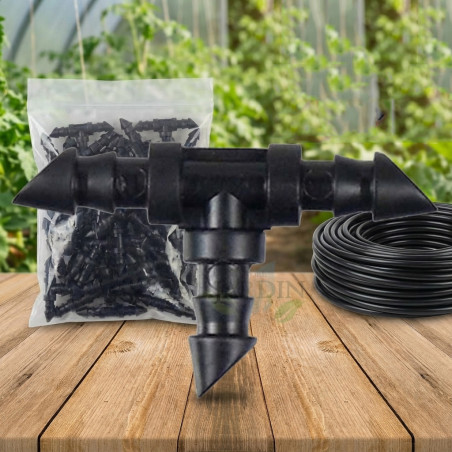 4,5-mm- Mikroschlauch-T-Stück . Tropfbewässerungsanschluss. Zum Verbinden von 4,5 x 6,5 mm Mikroschläuchen. Schwarz. Hohe Qualität. 10 Stück pro Packung.